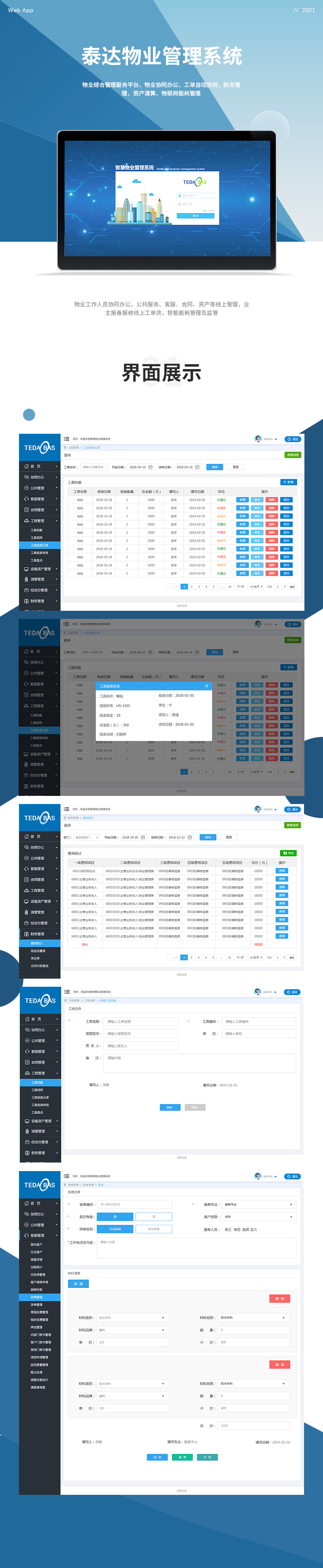 物業(yè)工作人員協(xié)同辦公,公共服務(wù)、客服、合同、資產(chǎn)等線上管理,業(yè)主報(bào)備報(bào)修線上工單流,智能能耗管理及監(jiān)管